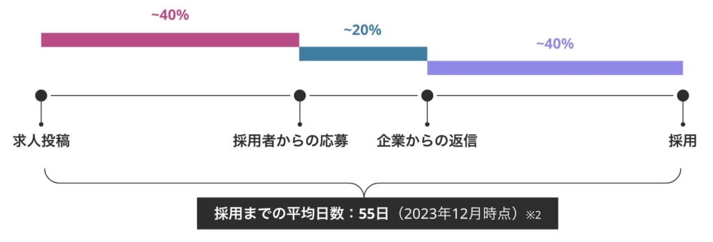 Indeedのグローバル調査では、求人を投稿してから採用に至るまでに、平均55日かかっていることが分かっています2。